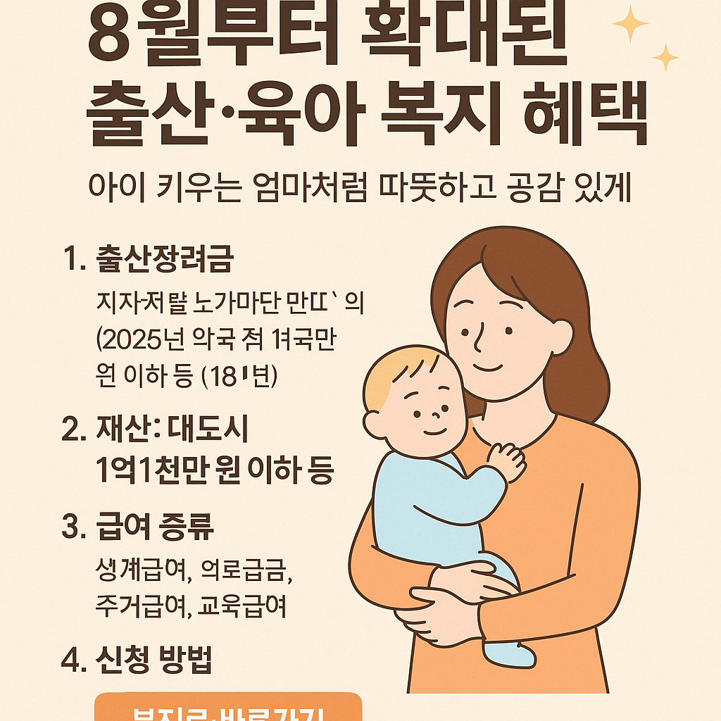 | 8월부터 확대된 출산·육아 복지 혜택 총정리 (5) | 2025.08.01 |